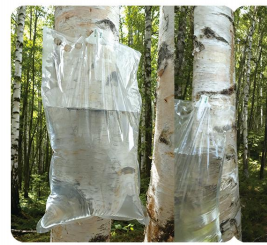 采用自主专利技术的桦树汁采集袋和采集管,两者能够紧密连...